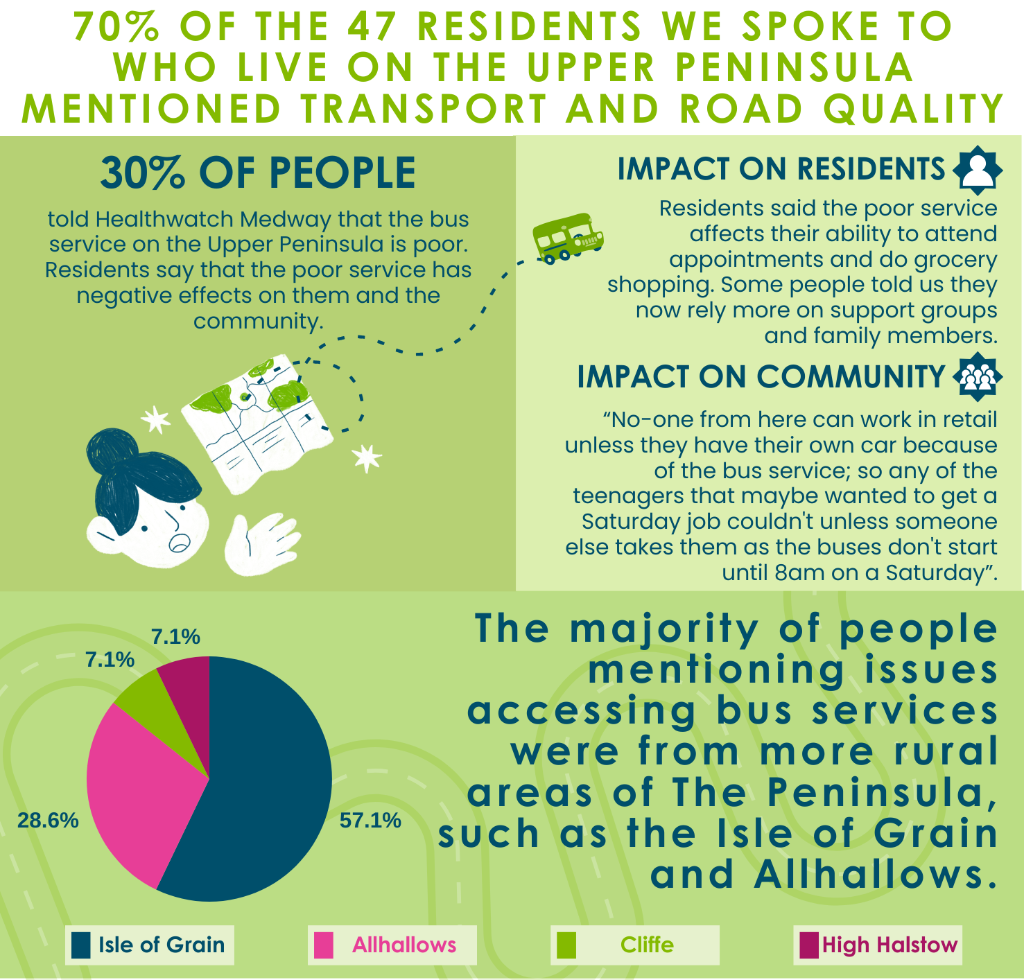 - 30% of people told us that the bus service is poor.